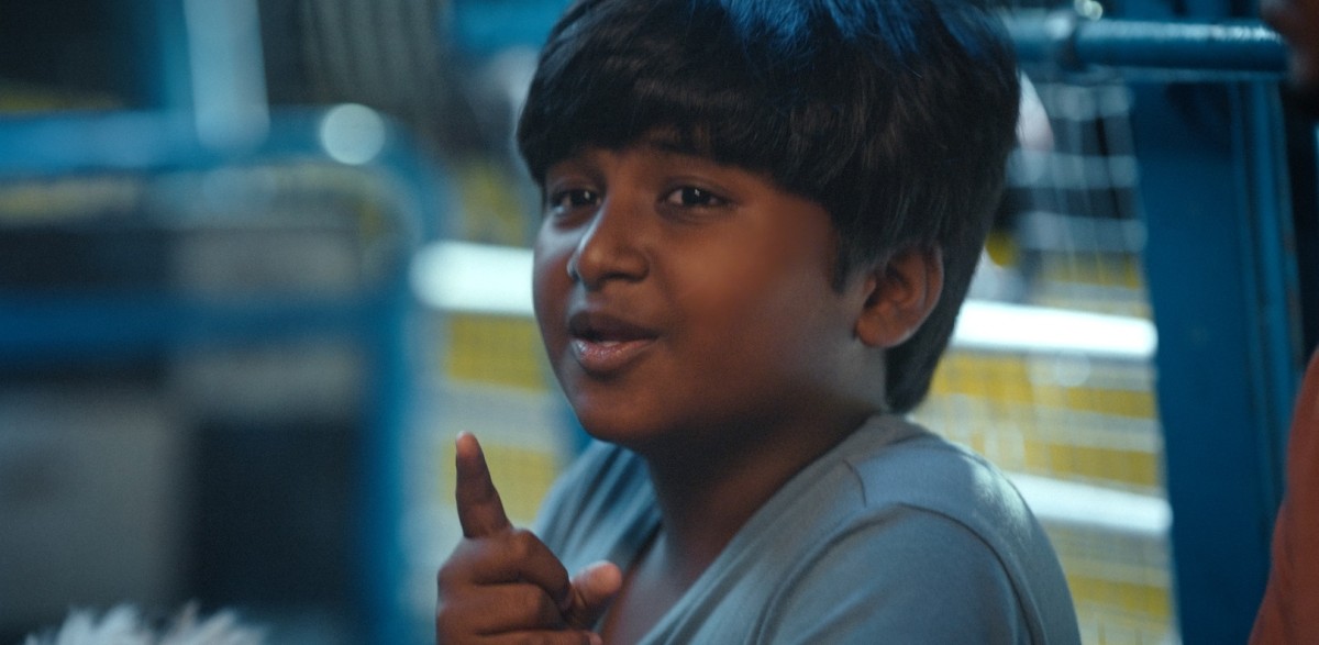 そんな背景から苦労して海を渡った一家だが、劇中では基本的に明るく穏やかであまり悲哀を感じさせない。物語の軸にあるのはあくまでもスリランカからやってきた家族とチェンナイで出会ったご近所さんたちとの交流で、どんな人でも観やすいように間口を広げるキャラクター造形になっている。その中でも特に次男ムッリ(演じるのはインド公開当時9歳のカマレーシュ・ジャガン)の頭の回転の速さ、利発な物言いについ感心して笑ってしまう。彼が思いついた悪知恵が一家の明暗を左右する展開も、脚本の巧さと俳優の芝居の個性が有機的に結びついていて好感をもった。
